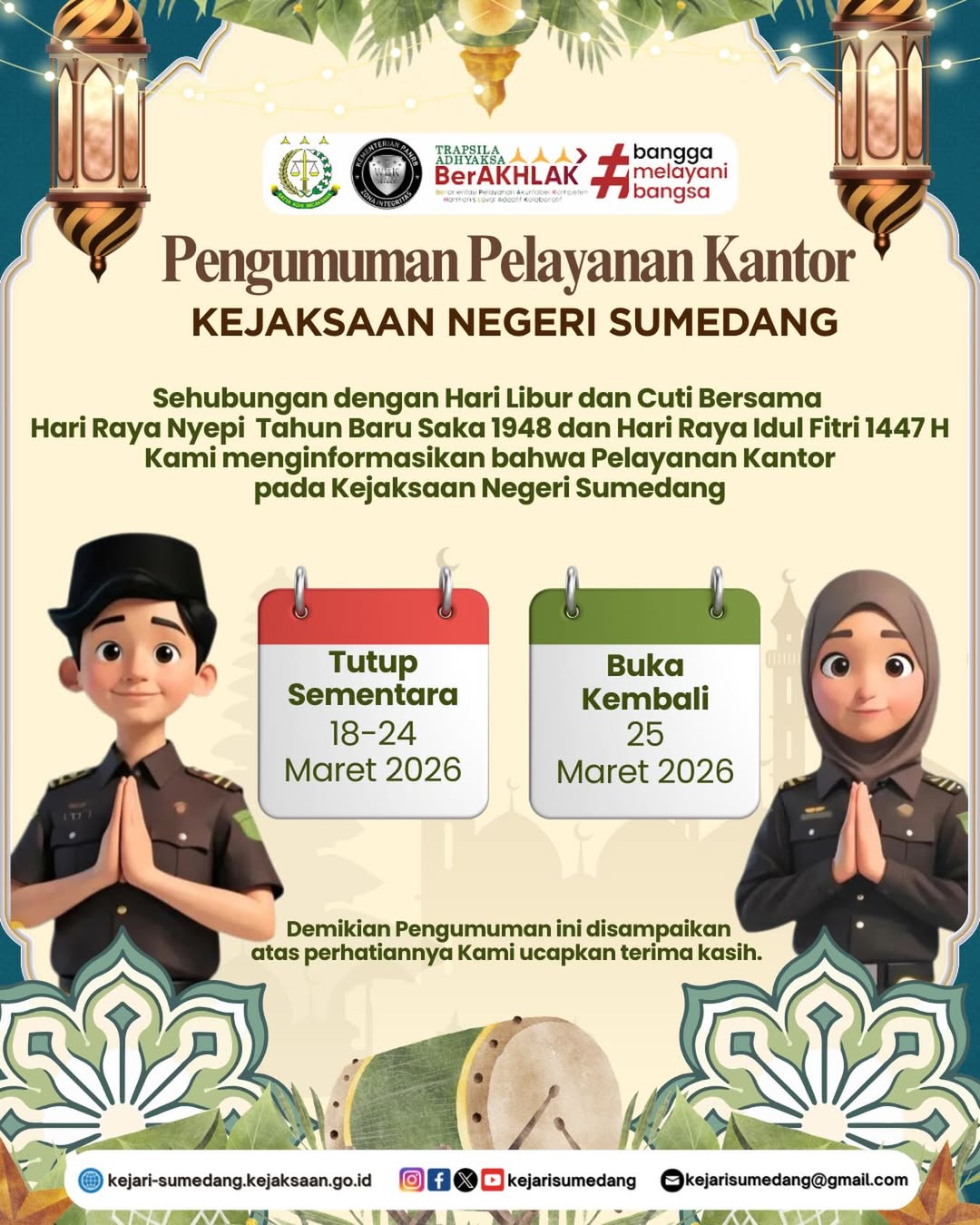 Selamat Hari Raya Idul Fitri, 1 Syawal 1447 H/2026 M.