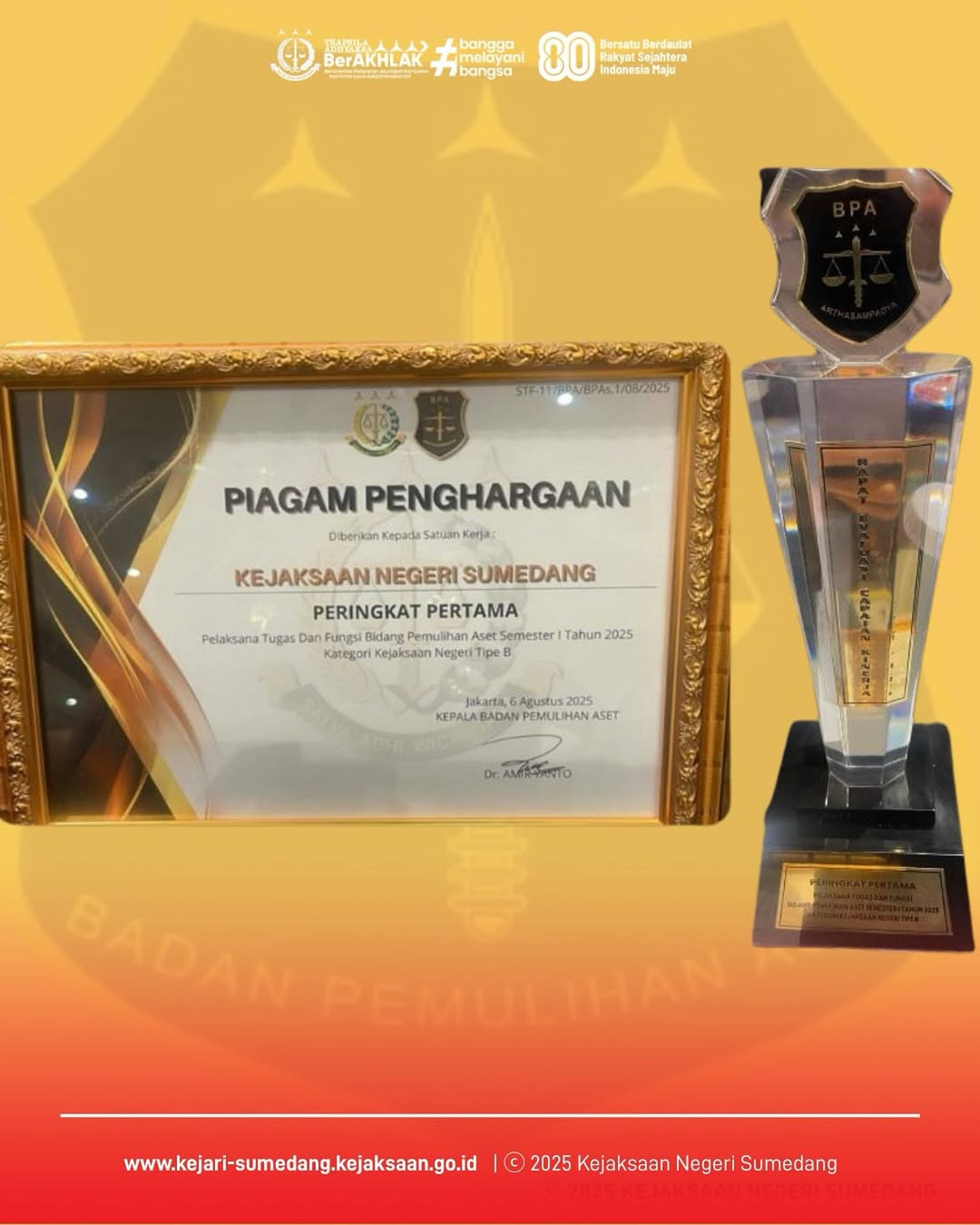 Peringkat 1 Nasional Pelaksana Tugas dan Fungsi Bidang Pemulihan Aset Kategori Kejaksaan Negeri Tipe B
