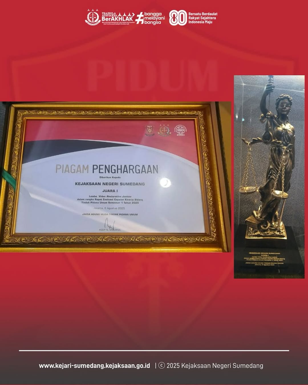 Peringkat 1 Nasional Lomba Video Restorative Justice dari Jaksa Agung Muda Tindak Pidana Umum