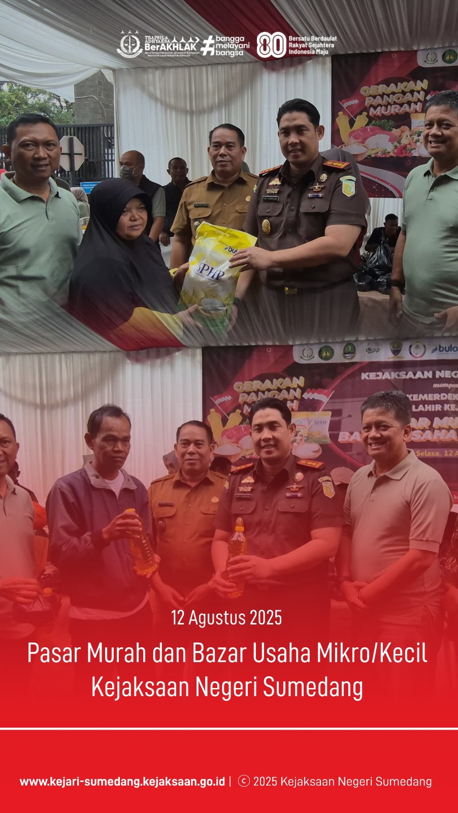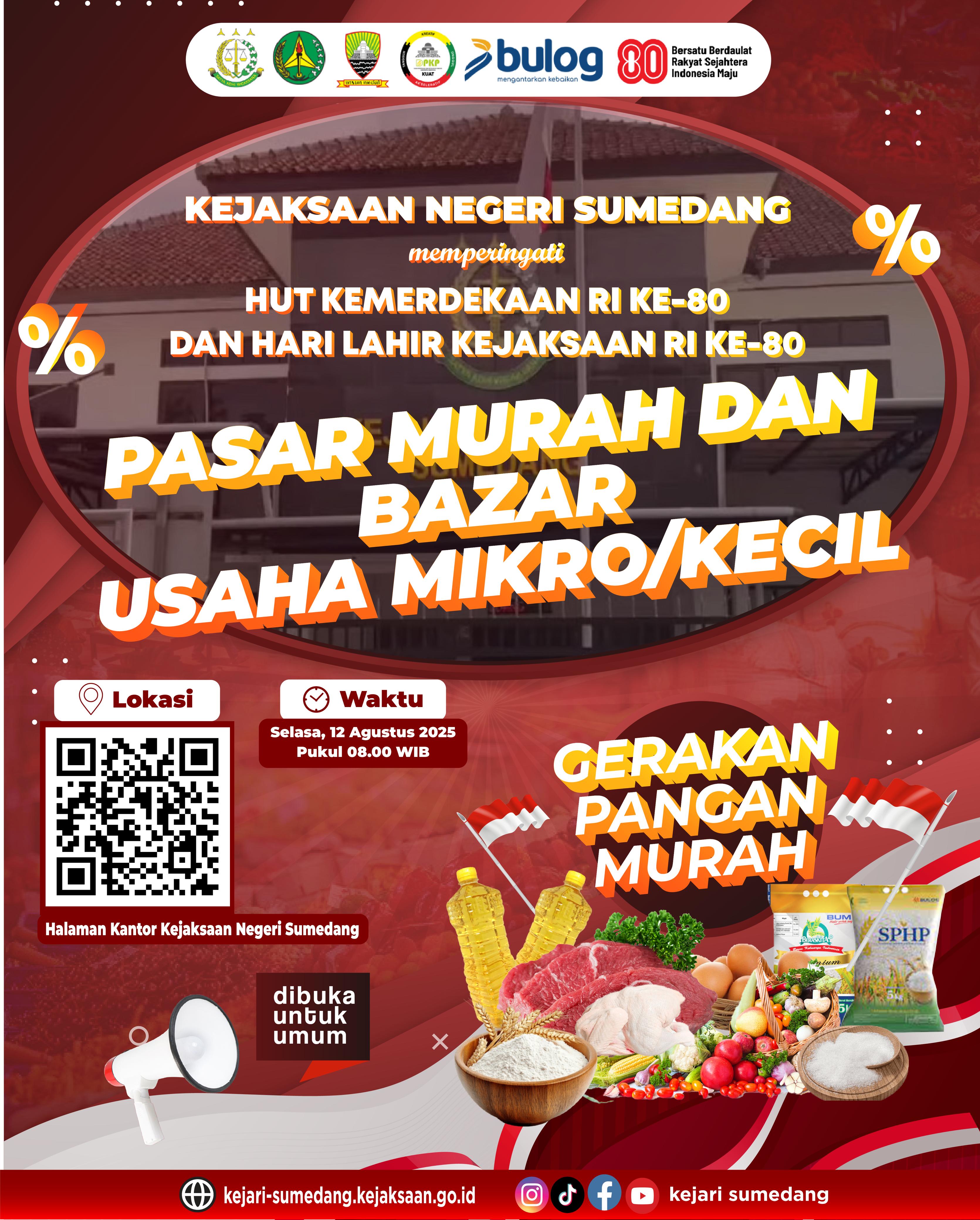 Pasar Murah dan Bazar Usaha Mikro/Kecil dalam rangka HUT Kemerdekaan Republik Indonesia ke-80 dan Hari Lahir Kejaksaan Republik Indonesia ke-80.